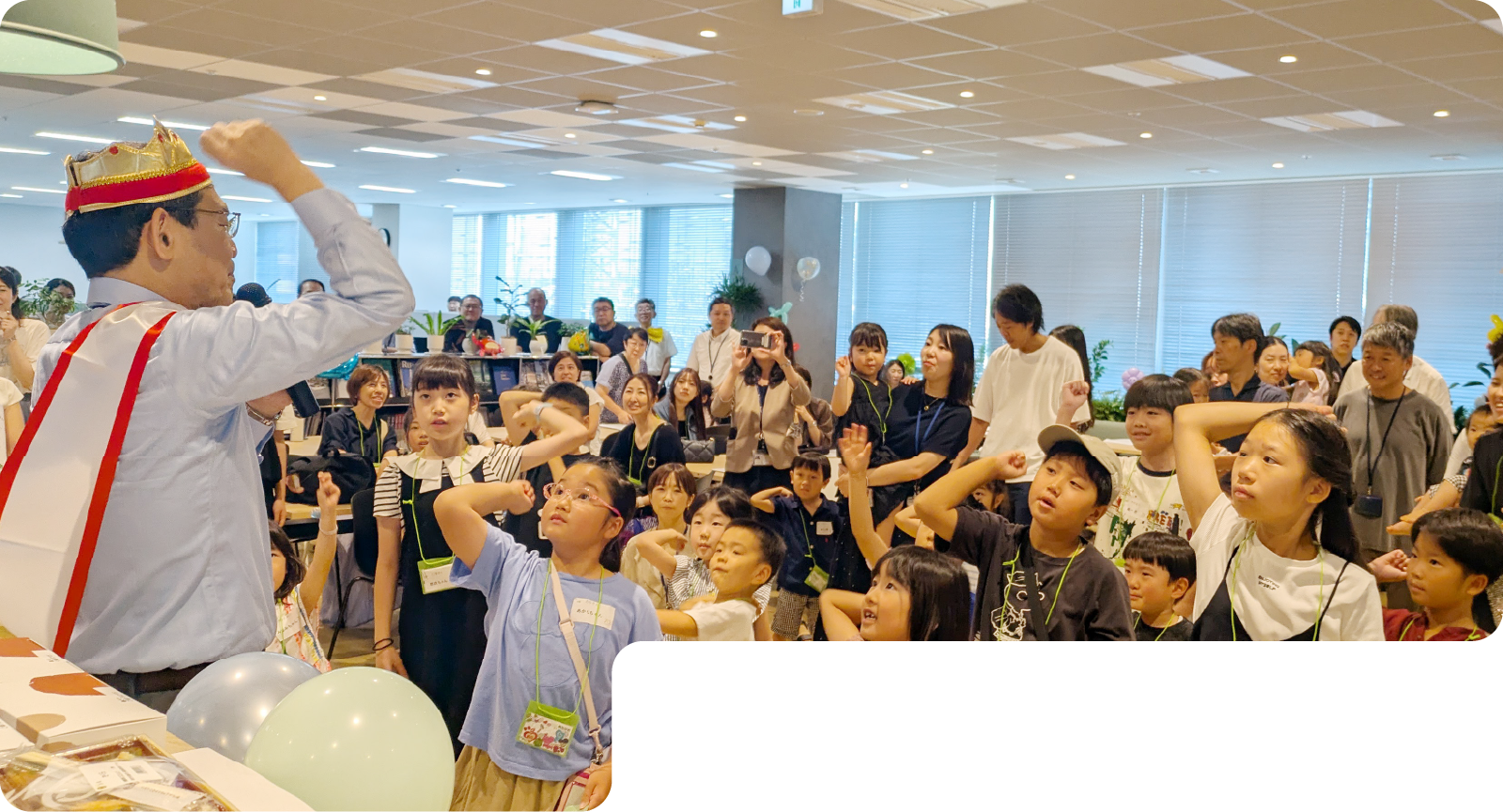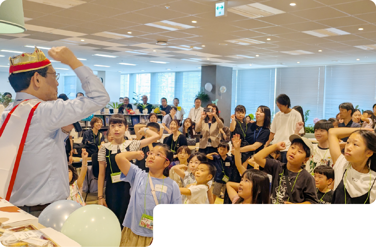 社長も交えて行われたじゃんけん大会では、子どもたちはもちろん家族も一緒に参加し、会場は笑い声と拍手に包まれました。
