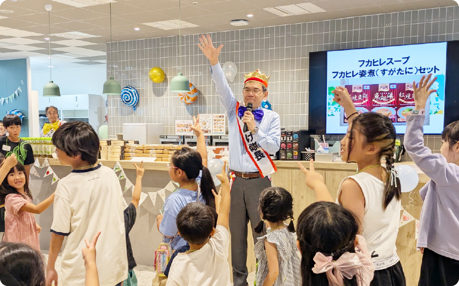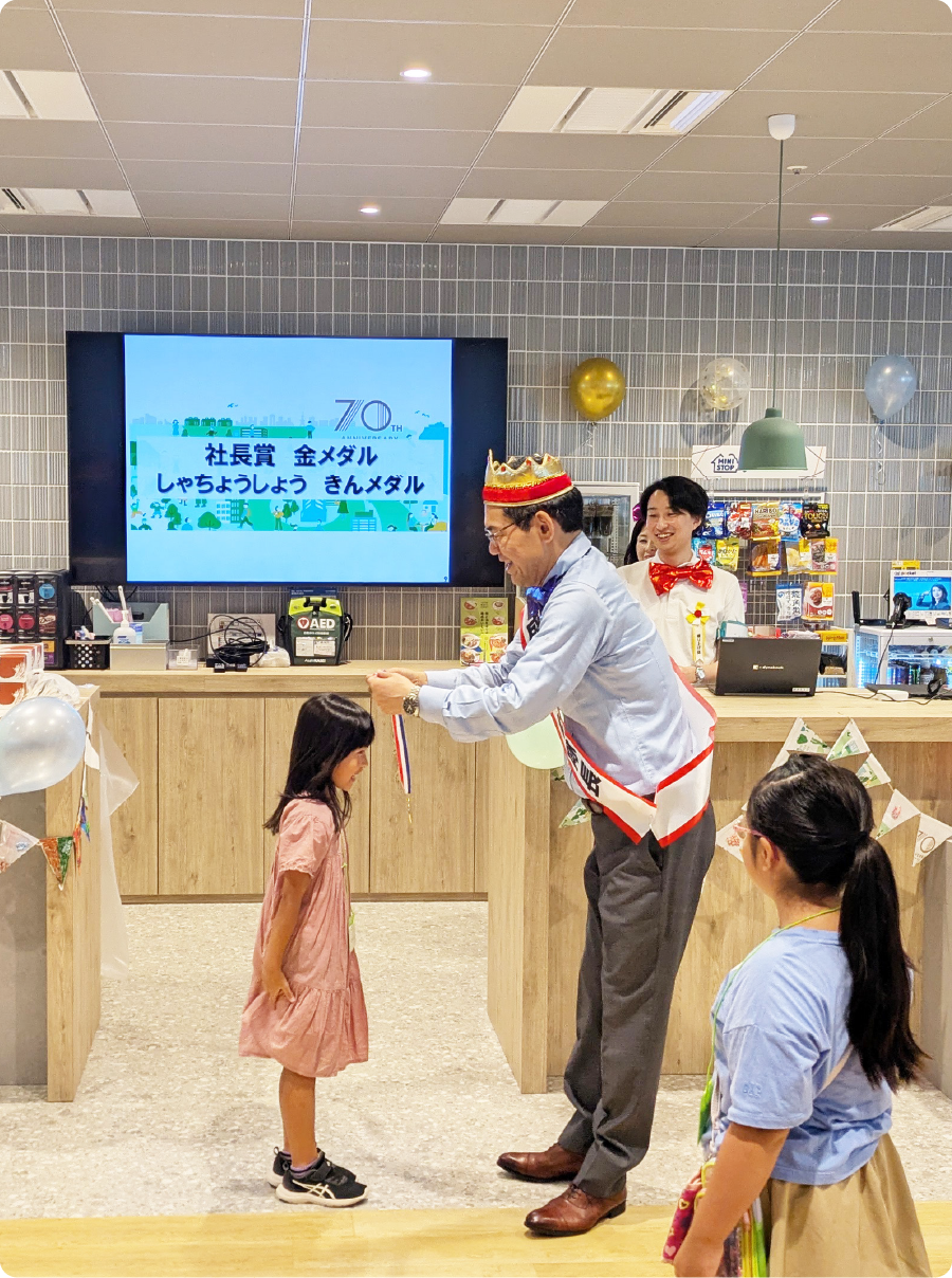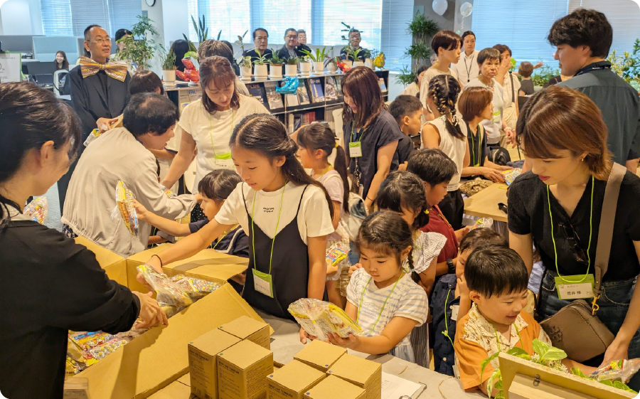 社長も交えて行われたじゃんけん大会では、子どもたちはもちろん家族も一緒に参加し、会場は笑い声と拍手に包まれました。